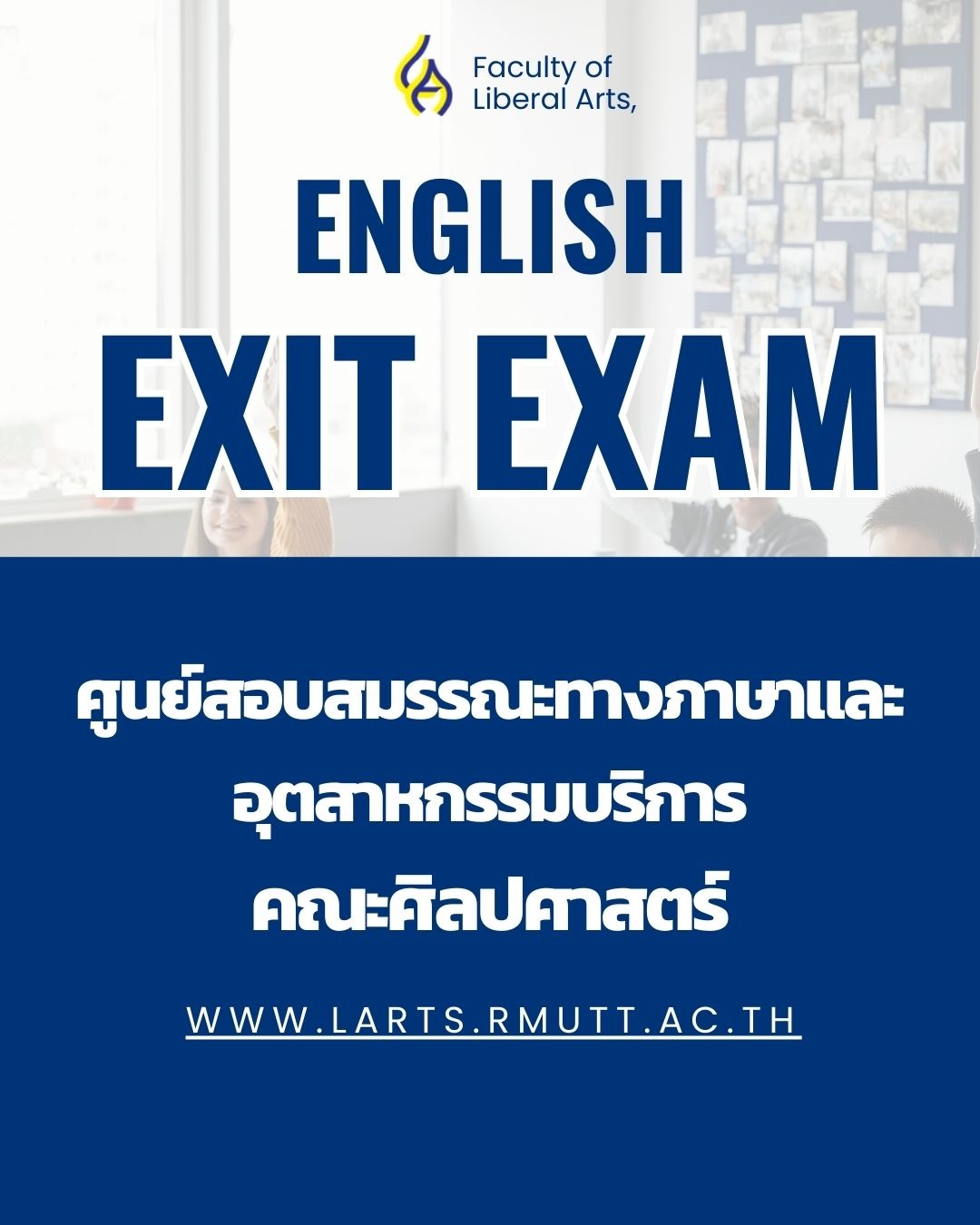 ลิ้งค์ข้อมูล : https://www.larts.rmutt.ac.th/%E0%B8%81%E0%B8%B2%E0%B8%A3%E0%B8%AA%E0%B8%AD%E0%B8%9A-english-exit-exam